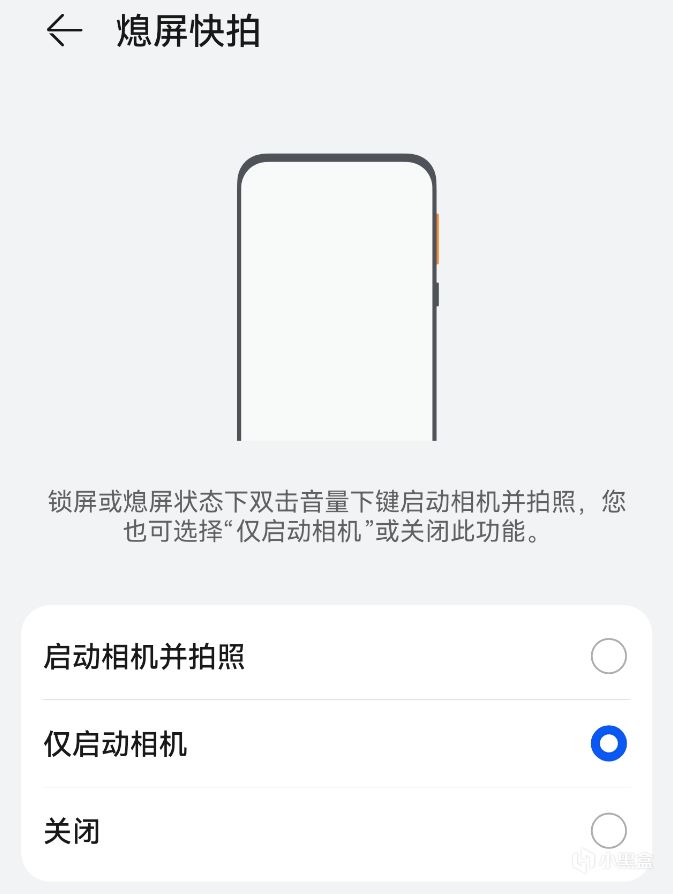 息屏状态下双击音量下键快速打开相机,在遇到美好瞬间需要快速打开相机时,这个功能很实用(默认设置为启动相机并拍照)