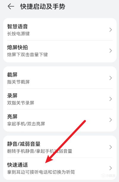设置—>辅助功能—>快捷启动及手势—>快速通话