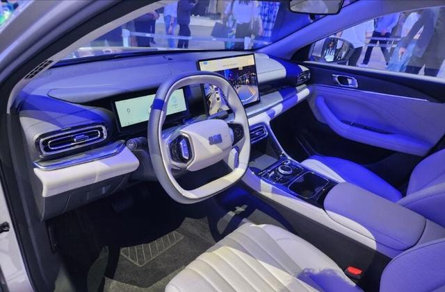内饰方面,新车延续了帝豪的设计基础,包括胶囊式的冷气出风口、宽体中央通道以及双手机储物位,并配备50W无线充电功能。同时,新车搭载10.2寸全液晶仪表与14.6寸中控触控屏,运行最新的Flyme Auto车载系统。